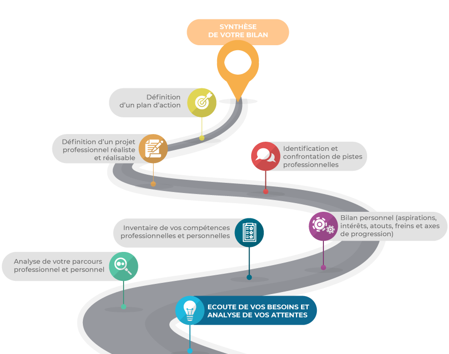 Cette démarche permet au bénéficiaire de faire le point sur sa carrière, sa personnalité, son potentiel…, dans le but de construire un projet professionnel, qui puisse répondre à ses attentes et ses motivations.